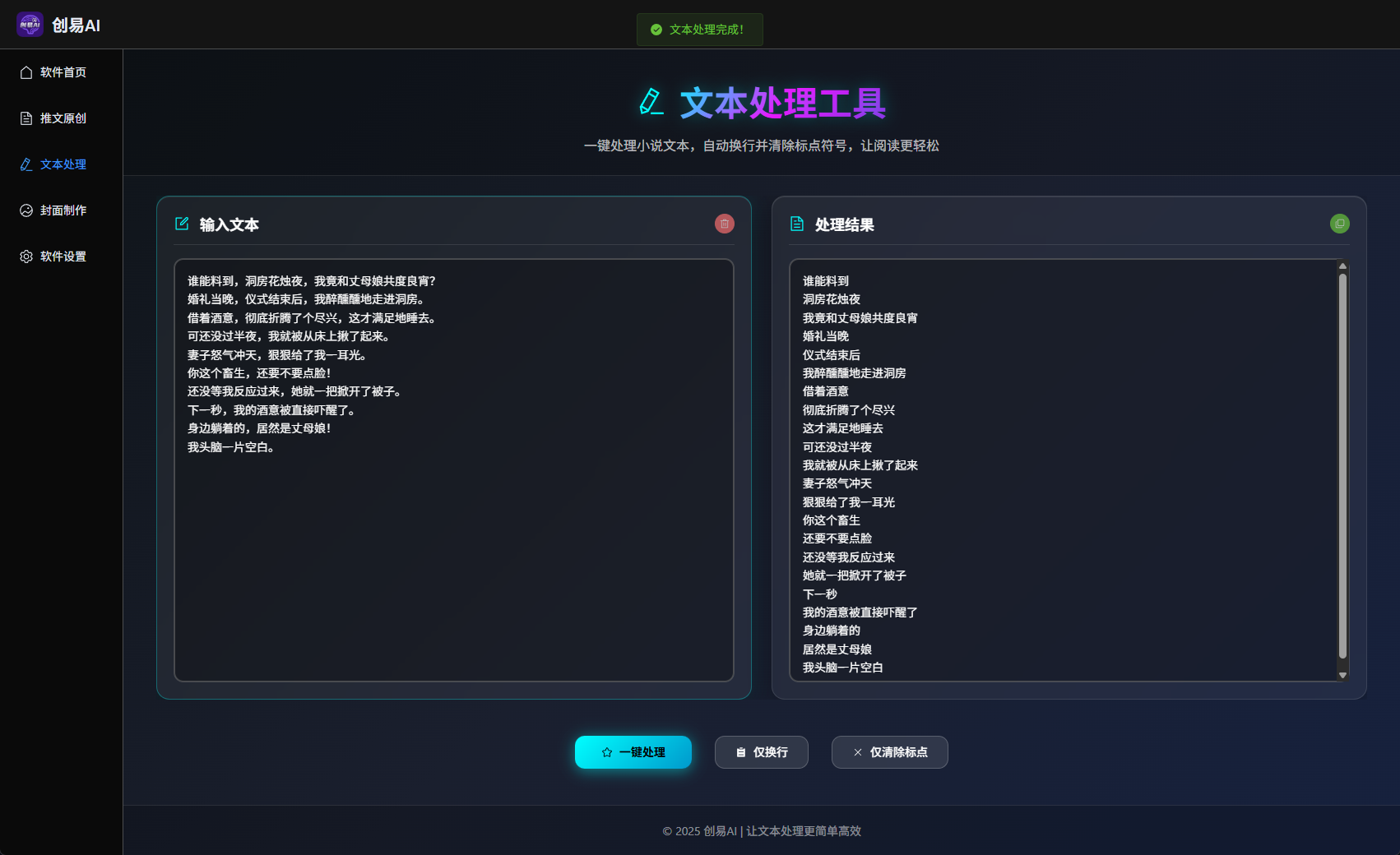 从小说文本到成品视频,创易 AI 提供全流程自动化解决方案。